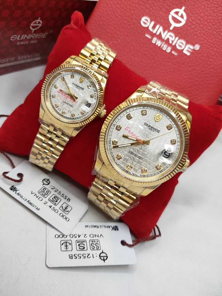 Đồng hồ cặp Sunrise cực hot, là một trong các mẫu thiết kế đình đám, bán chạy nhất của Sunrise chính là dòng đồng hồ đính đá, mặt số cao cấp, sang trọng. Chất liệu vỏ bằng thép không gỉ 316L, chống siêu ăn mòn, giữ vẻ đẹp sáng bóng cho đồng hồ. Máy Japan quartz cực bền