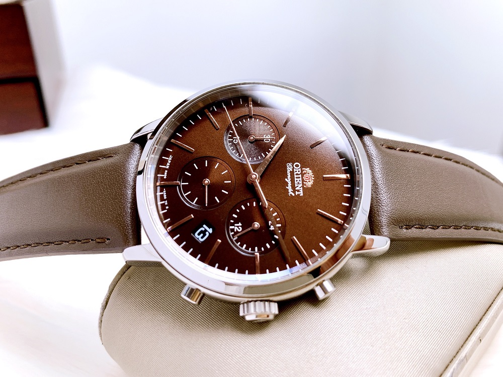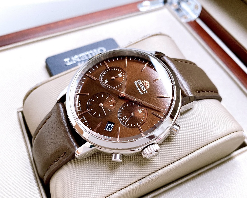 Anh chàng thanh lịch Orient RA-KV0304Y với tone màu chocoles toát lên vẻ nam tính cho các man. Máy Pin Chronograph cực kì chính xác kèm kính cứng chịu lực cực tốt