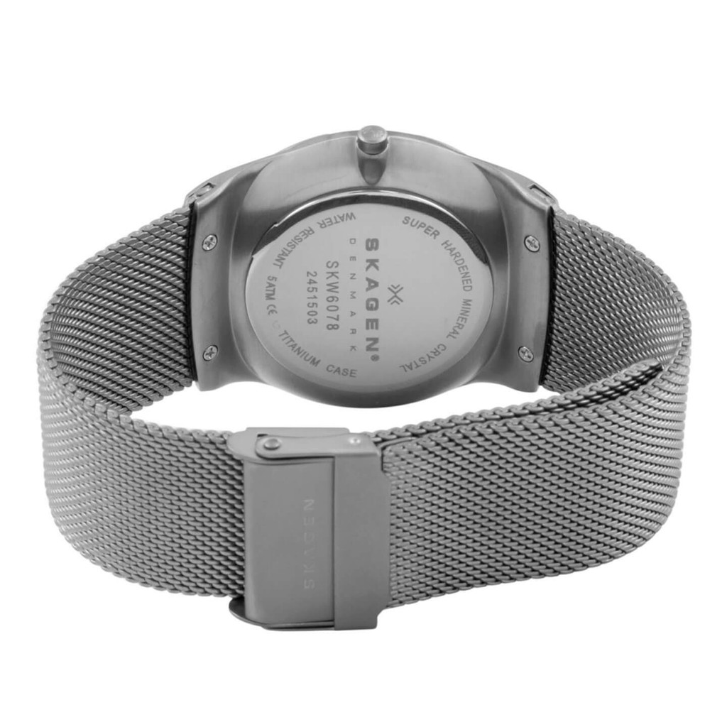 Đồng hồ nam Skagen SKW6078 có thiết kế tổng thể đơn giản với dây đen kèm mặt màu xám lịch lãm, lịch thứ và ngày nổi bật. Dây lưới ôm mặt tạo nên vẻ săn chắc cá tính cho phái mạnh