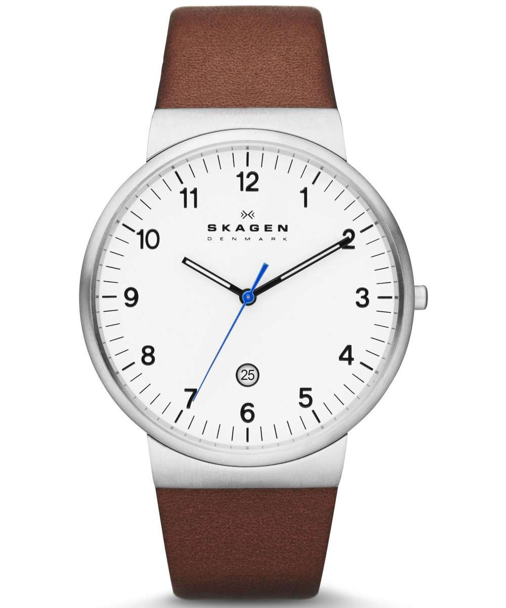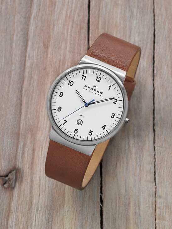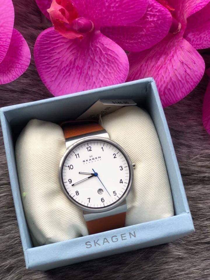 Đồng hồ nam Skagen SKW6082 có thiết kế tổng thể đơn giản với dây da nâu và mặt màu trắng sang lịch lãm. Dây da ôm mặt tạo nên vẻ săn chắc cá tính cho phái mạnh