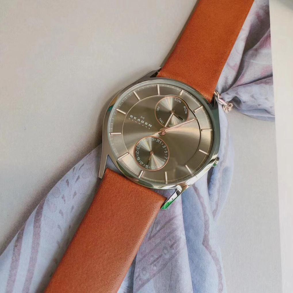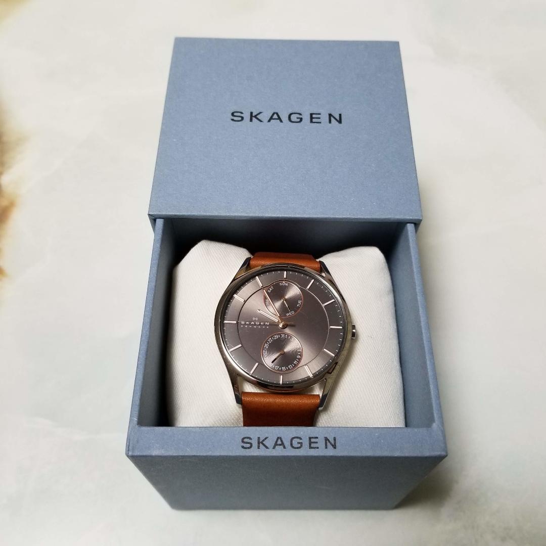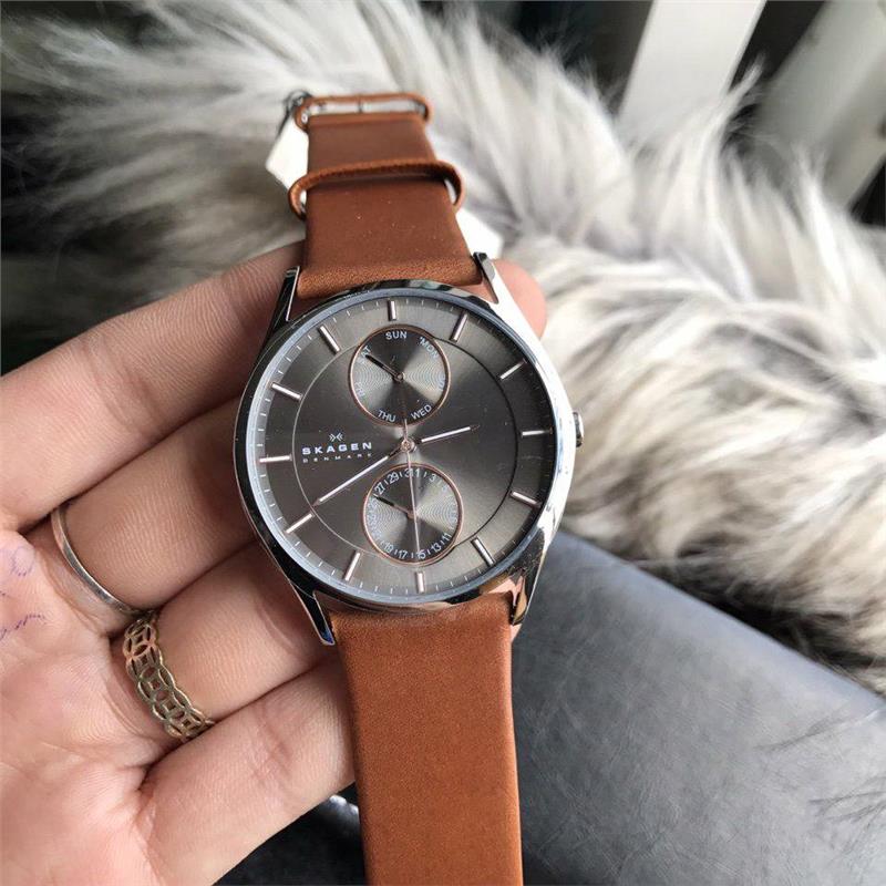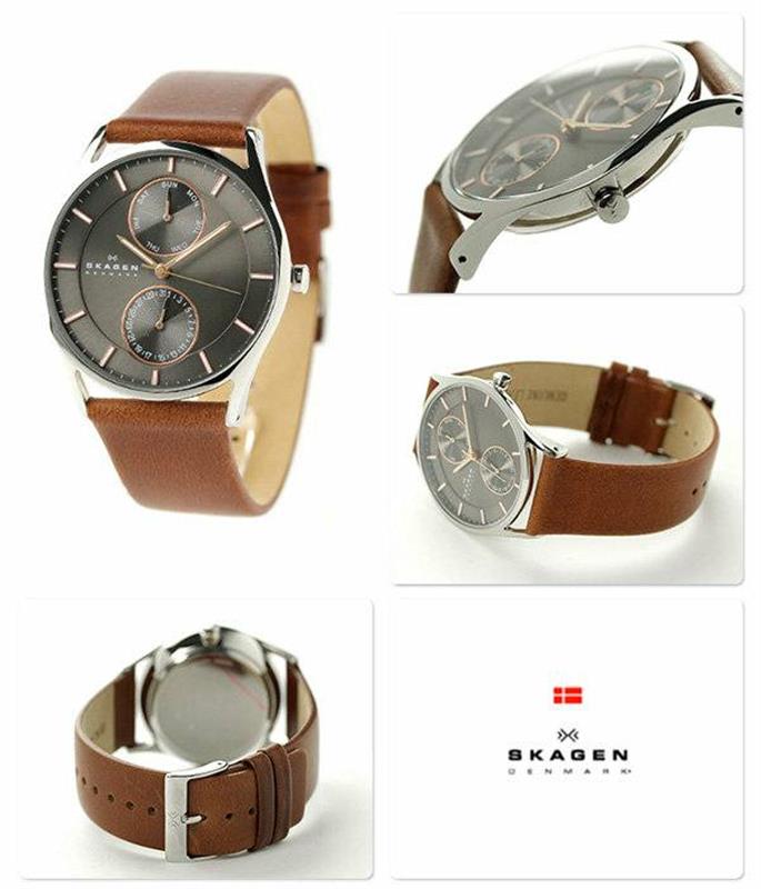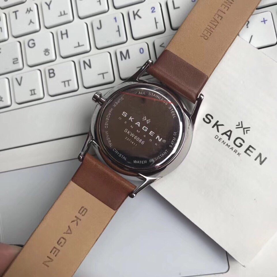 Đồng hồ nam Skagen SKW6086 có thiết kế tổng thể đơn giản với dây da nâu và mặt màu xám sang lịch lãm, 2 vòng lịch ngày và thứ nổi bật. Dây da ôm mặt tạo nên vẻ săn chắc cá tính cho phái mạnh