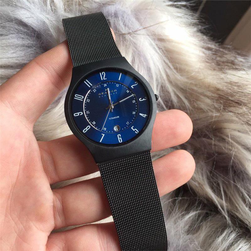 Đồng hồ nam Skagen 233XLTMN có thiết kế tổng thể đơn giản với dây đen lịch lãm kèm mặt xanh tươi mát. Mặt siêu mỏng, dây lưới ôm mặt tạo nên vẻ săn chắc cá tính cho phái mạnh