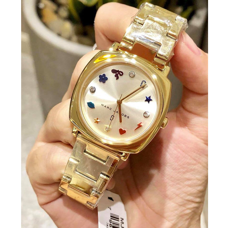 Đồng hồ Marc Jacobs MJ3549 với thiết kế mặt 34mm ôm sát tay kèm với bên trong mặt số được đính các icon dễ thương, dịu dàng thay thế cho các chữ số là sự sáng tạo bộc phá tạo nên điểm cuốn và sức hút cho người mang.