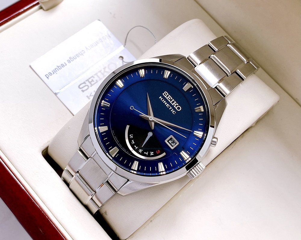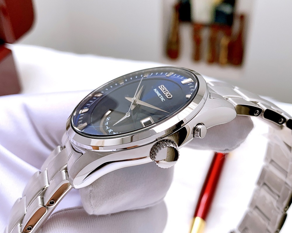 Đồng hồ Seiko nam SRN047P1 Kinetic mặt xanh. Công nghệ độc quyền của SEIKO đã biến chuyển động của cánh tay (khi bạn đeo đồng hồ) thành điện năng để đồng hồ hoạt động. Độ chính xác như đồng hồ điẹn tử mà gần như không phải thay pin như đồng hồ Cơ, là sản phẩm rất thân thiện với môi trường, Kính hardlex siêu cứng chịu lực tuyệt vời