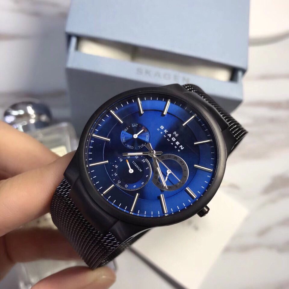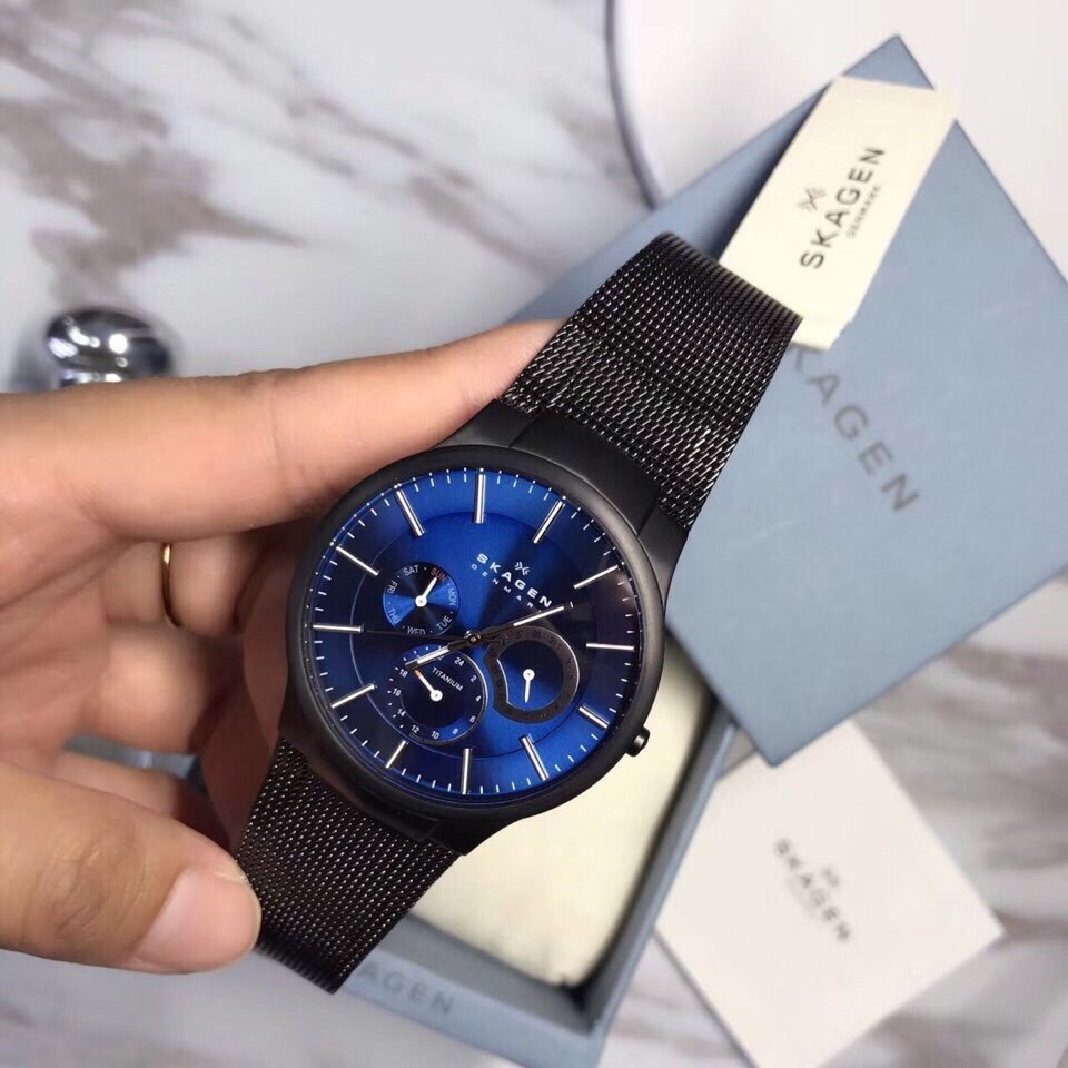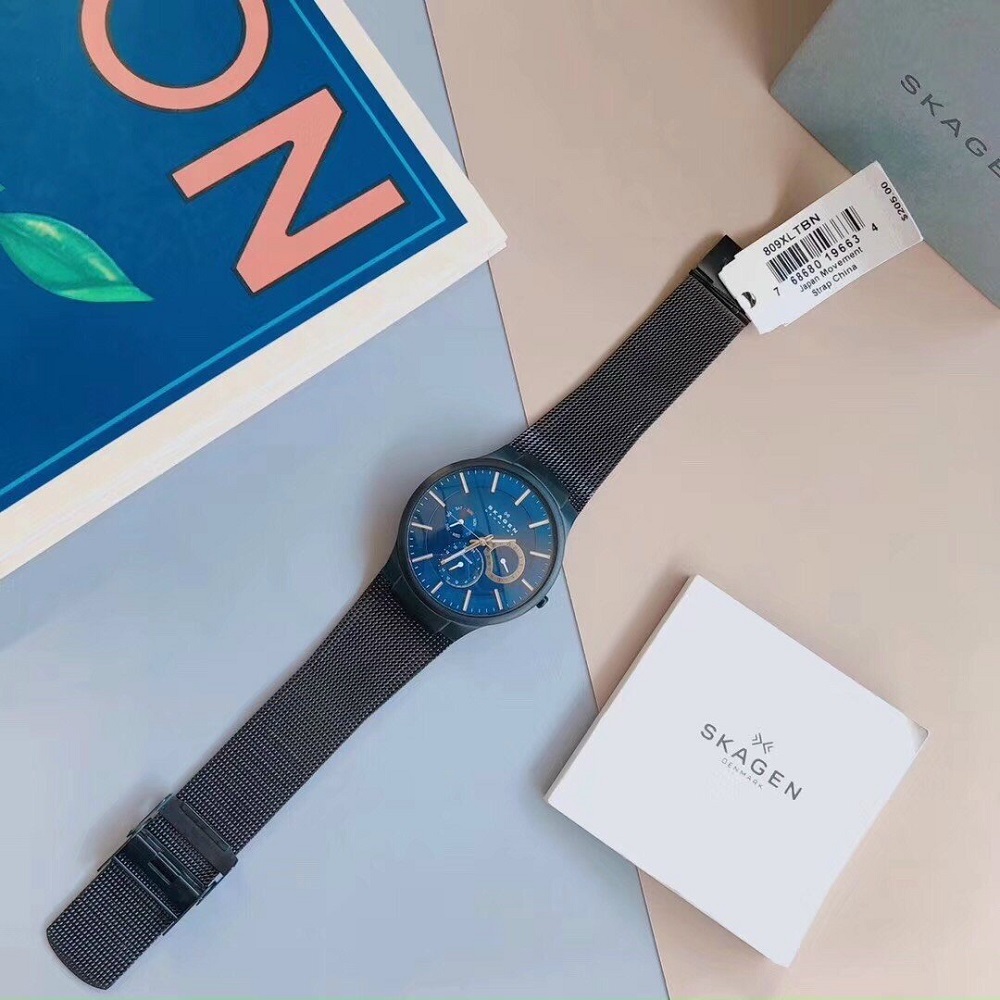 Đồng hồ Skagen 809XLTBN với chất liệu vỏ Titanium siêu nhẹ, dây thép dạng lưới, thiết kế cao cấp. Mặt xanh trẻ trung lịch lãm sang trọng với 6 kim có lịch ngày, thứ cùng giờ 24h