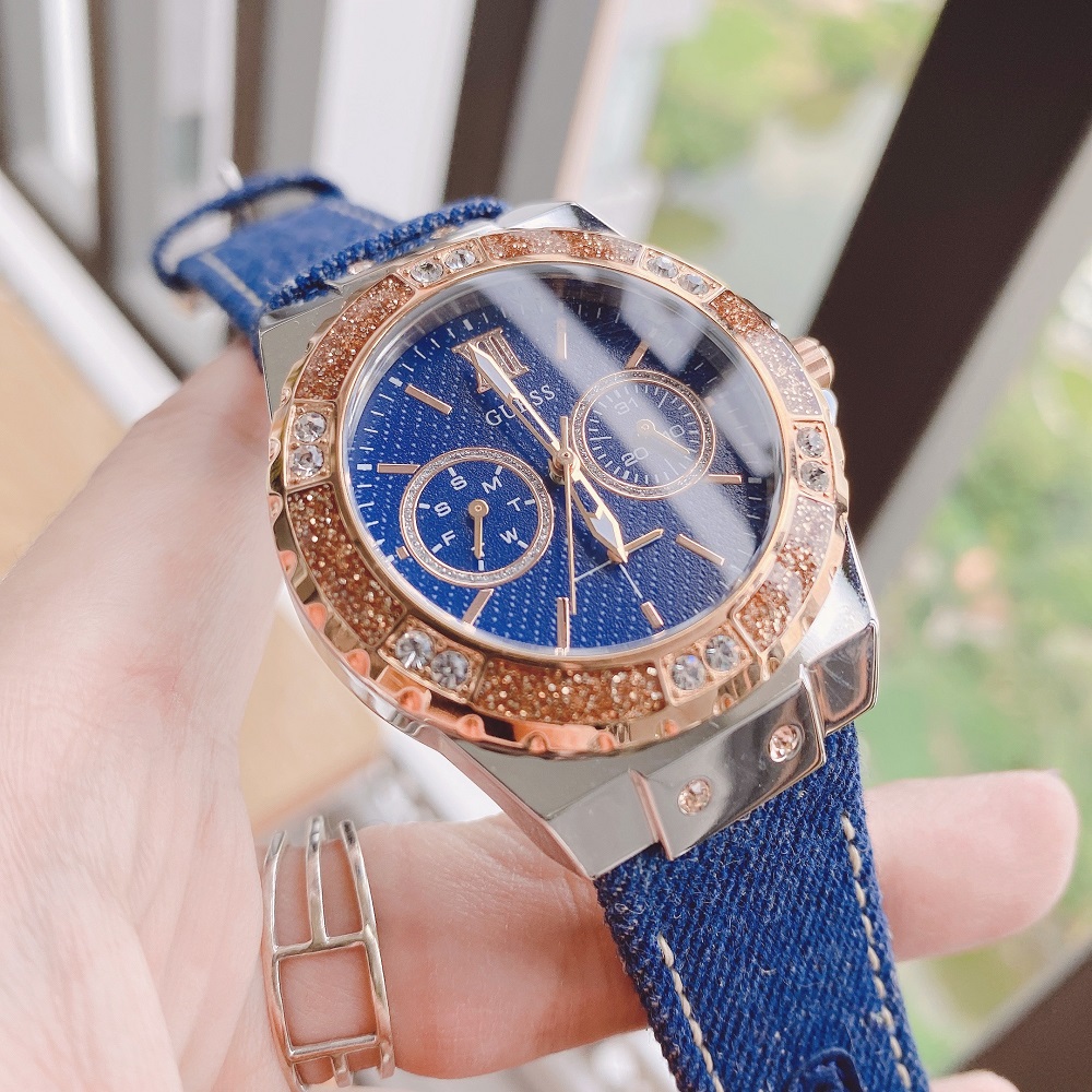 Đồng hồ Guess U0775L10 dáng Hublot dây Jean với dáng thể thao khoẻ khoắn