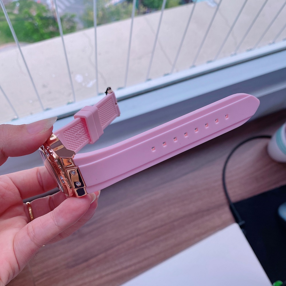 Đồng hồ Guess nữ W1053L3 Guess hublot hồng nhẹ nhàng. Dây silicon m siêu bền đi mưa nắng thoải mái. Phủ trên mình lớp áo của Hublot đẳng cấp, vẻ đẹp của ẻm cũng kg kém cạnh các nàng con nhà giàu đâu nhé.